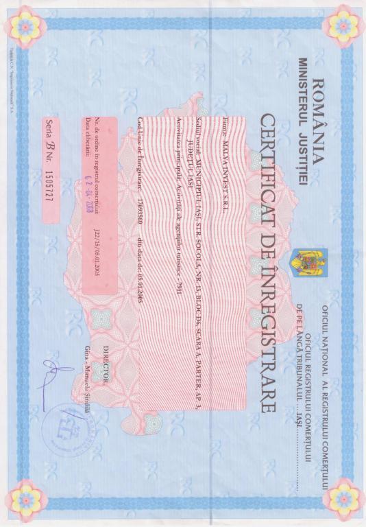 - Numar de ordine in Registrul Comertului: J22/15/2005